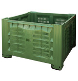 Injection molded container made of high density polyethylene (HDPE) for food use, with perforated bottom and walls. Box manufactured with a guaranteed and certified first casting material, not subject to weight variations in contact with water, fully recyclable. Resistant to UV and infrared rays, high and low temperatures. Container suitably structured to be stackable, to facilitate storage and handling operations. Particular structure of the walls which allows, for the same size and compared to containers of equal external dimensions, the storage of a larger quantity of product to be preserved and / or handled. Dimensions 1125x1125x770 mm.