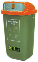 Lid with steel mask with central slot for sorting out expired batteries and locking system by standard triangular key placed under the edge.