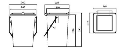 Galvanized iron handle in an appropriate shape for practical maneuverability when emptying.