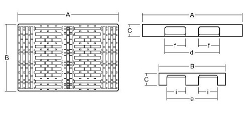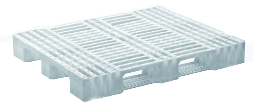 Injection molded pallets in high density polyethylene (HDPE) for food use.