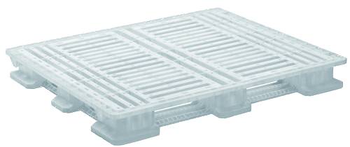 Injection molded pallets in high density polyethylene (HDPE) for food use.